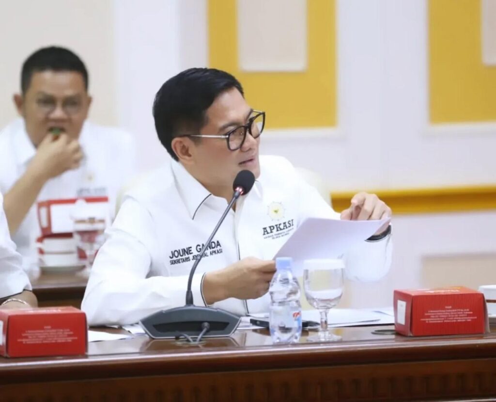 “APKASI menegaskan komitmennya dalam memperjuangkan kepentingan anggotanya serta mendukung pemerintah pusat dalam merumuskan kebijakan yang adil dan berkeadilan fiskal,” Kata Joune Ganda.