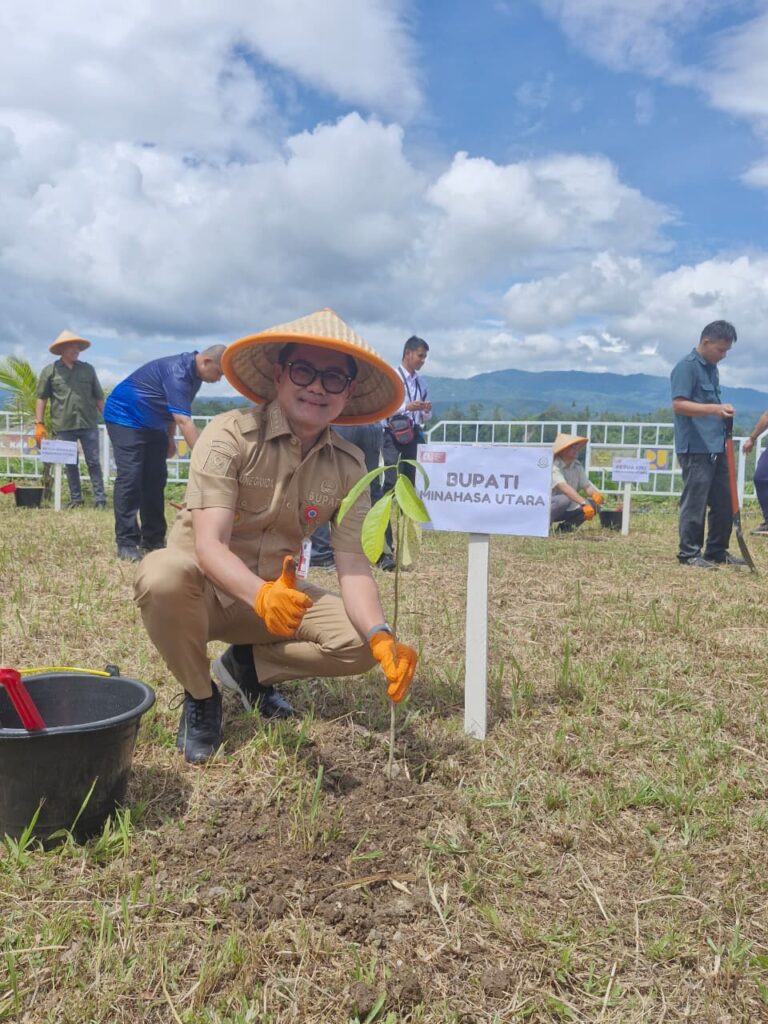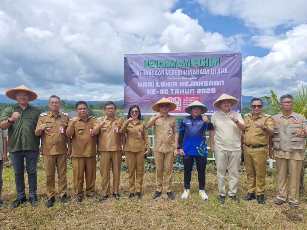 MINUT,Sumberedaksi– Pemerintah Kabupaten (Pemkab) Minahsa utara (Minut), Bupati Joune Ganda menghadiri Kegiatan Aksi Peduli Lingkungan Penanaman Pohon oleh Pegawai Kejaksaan Negeri Minahasa Utara dalam rangka Memperingati Hari Lahir Kejaksaan RI Ke-80, Tahun 2025. Di Area Halaman Kantor Pengelola Bendungan Kuwil Desa Kawangkoan Kec. Kalawat. Selasa, (19/8/2025).