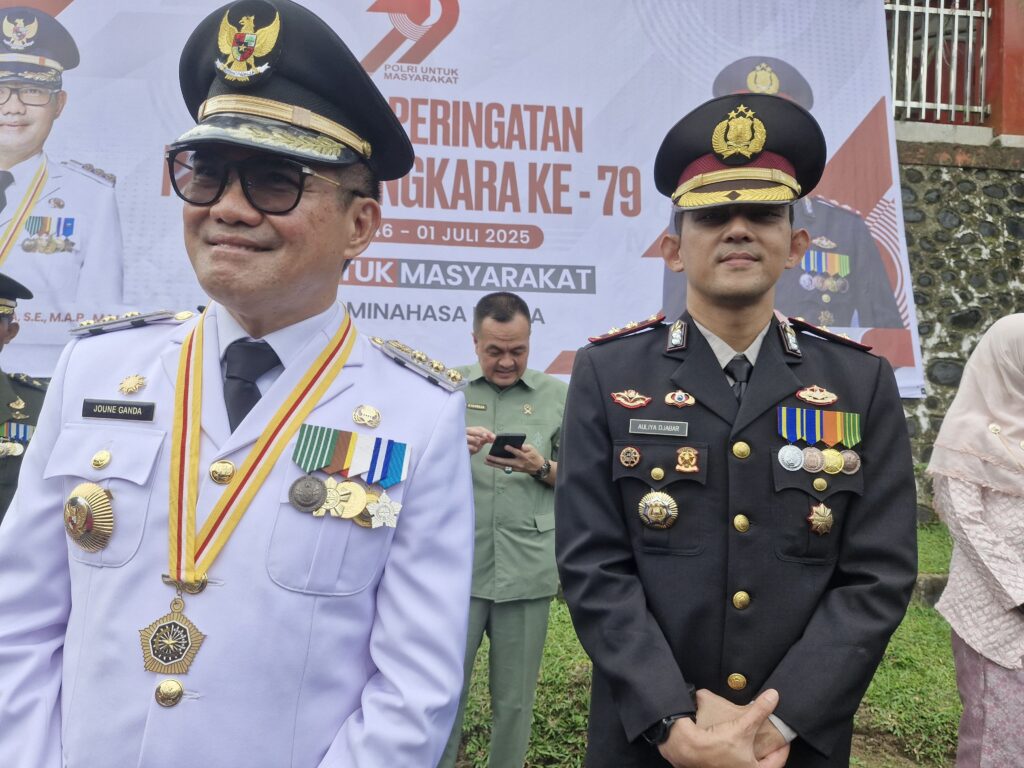 MINUT,Sumberedaksi– Pemerintah kabupaten Minahasa Utara, Bupati Joune Ganda menghadiri Upacara dalam rangka Peringatan Hari Bhayangkara Ke-79 Tahun 2025, Upacara berjalan dengan khidmat, tertib, dan penuh kekeluargaan. Bertempat di Lapangan Pemkab Minut. Selasa, (1/7/2025).