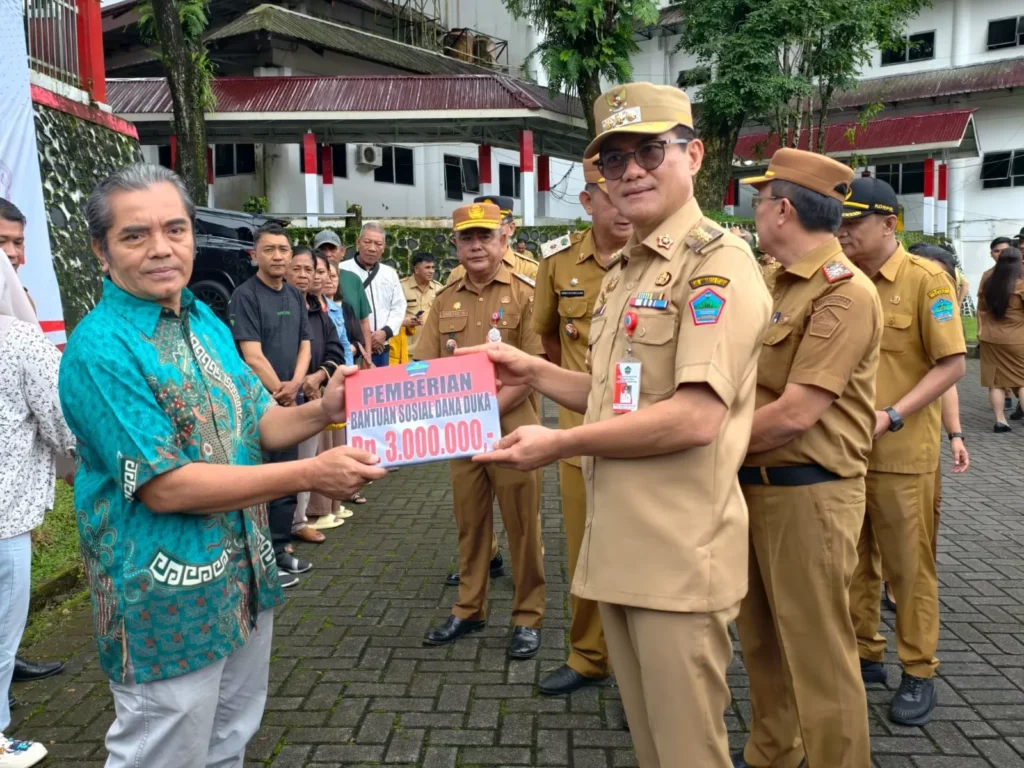 MINUT,Sumberedaksi– Pemerintah Kabupaten Minahasa Utara menyalurkan bantuan dana duka usai pelaksanaan apel perdana tahun 2026. Penyaluran bantuan tersebut dilakukan secara simbolis oleh Bupati Minahasa Utara Joune Ganda di Lapangan Kantor Bupati Minahasa Utara, Senin (5/1/2026).
