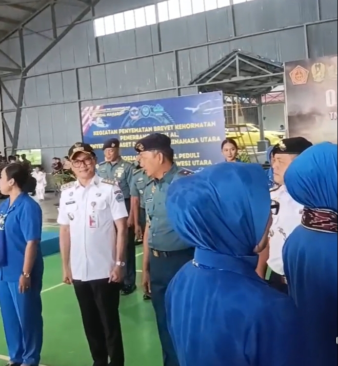 MINUT,Sumberedaksi– Pemerintah kabupaten Minahasa utara, Bupati Joune Ganda, mengikuti kegiatan penyematan Brevet kehormatan penerbangan TNI AL, dan Penyerahan aset dari Bupati Minahasa Utara dan bakti sosial PUSPENERBAL peduli di bumi nyiur melambai Sulawesi Utara. Bertempat di Apron Lanudal Manado. Rabu, (16/7/2025)