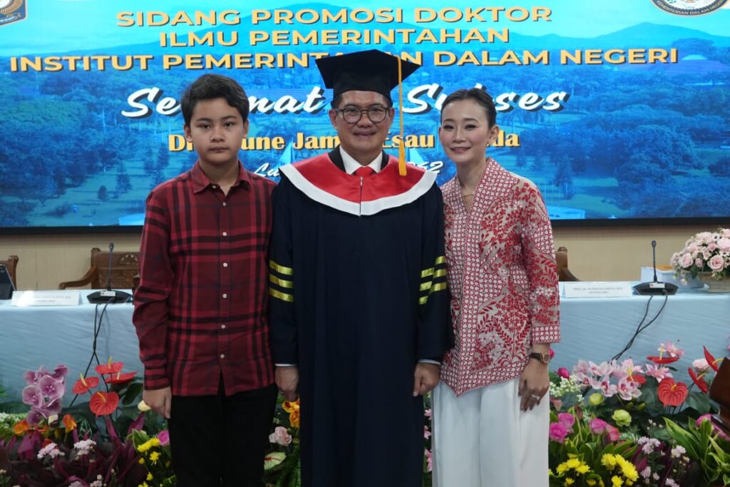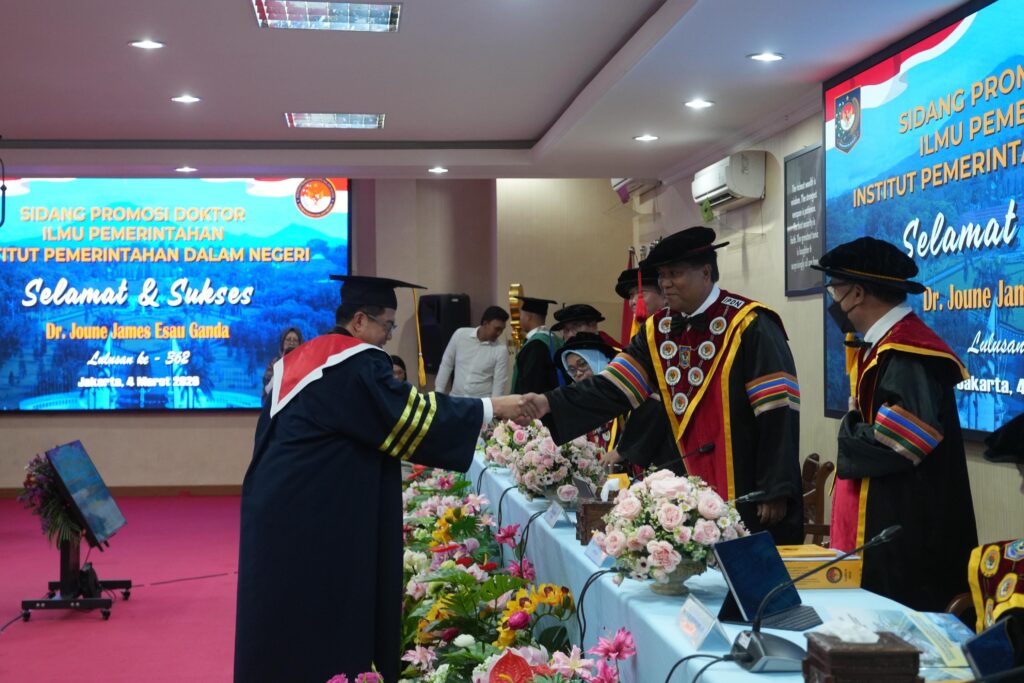 JAKARTA,Sumberedaksi– Bupati Minahasa Utara, Joune James Ganda, menuntaskan perjalanan akademiknya dengan gemilang. Dalam Sidang Promosi Doktor yang digelar di Sekolah Pascasarjana Institut Pemerintahan Dalam Negeri (IPDN), Jakarta Selatan, Rabu (4/3/2026), Joune resmi menyandang gelar Doktor Ilmu Pemerintahan.