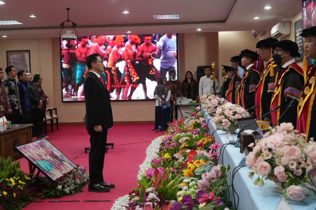 Momen emosional juga mewarnai pidatonya saat ia menyampaikan terima kasih kepada sang istri, Rizya Natasha Ganda Davega, dan putranya, Valentino Rafael Ganda. Ia juga memberikan penghormatan khusus bagi almarhumah ibundanya yang selalu menjadi pilar doa dalam setiap langkah karier dan pendidikannya.