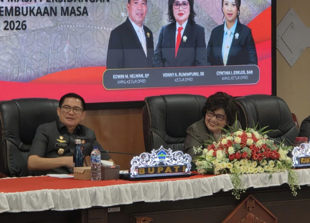 MINUT,Sumberedaksi– Dewan Perwakilan Rakyat Daerah (DPRD) Kabupaten Minahasa Utara (Minut), mengelar rapat paripurna Selasa (13/01/2026) dalam rangka mendengarkan hasil Reses masa persidangan pertama tahun sidang kedua tahun 2025 dan penutupan masa persidangan pertama tahun sidang kedua tahun 2025 dan pembukaan masa persidangan kedua tahun sidang kedua tahun 2026.
