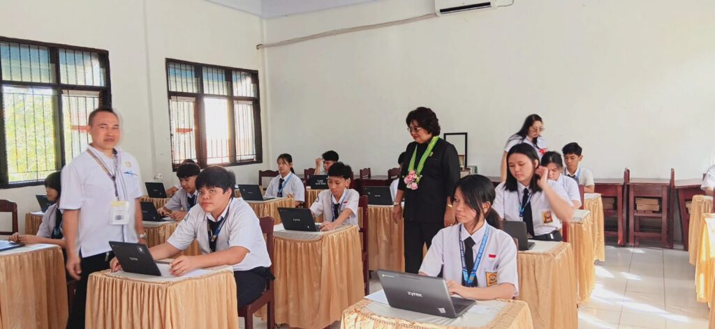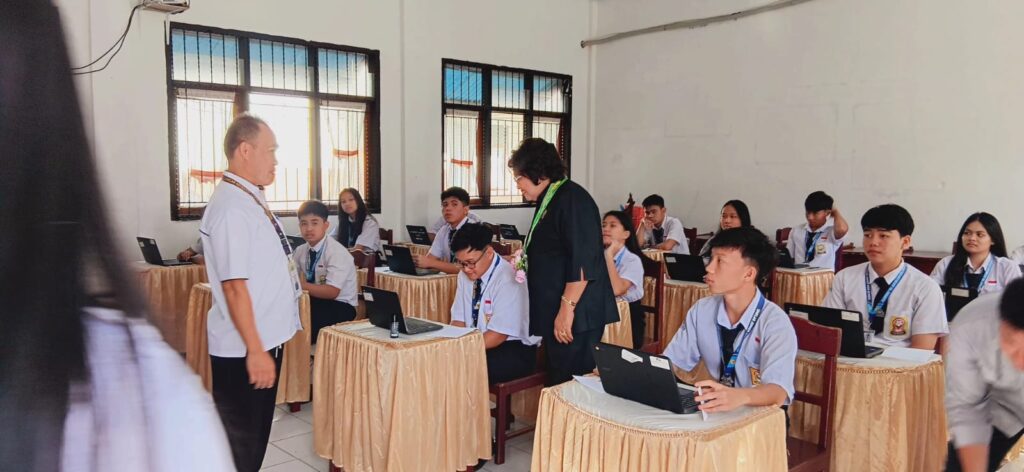Ketua Dewan VAR datang memantau dan sekaligus langsung membuka Token TKA didampingi Kepala Sekolah (Kepsek) SMP Unklab Adrin A. Lumangkun, SPd, MAEd.