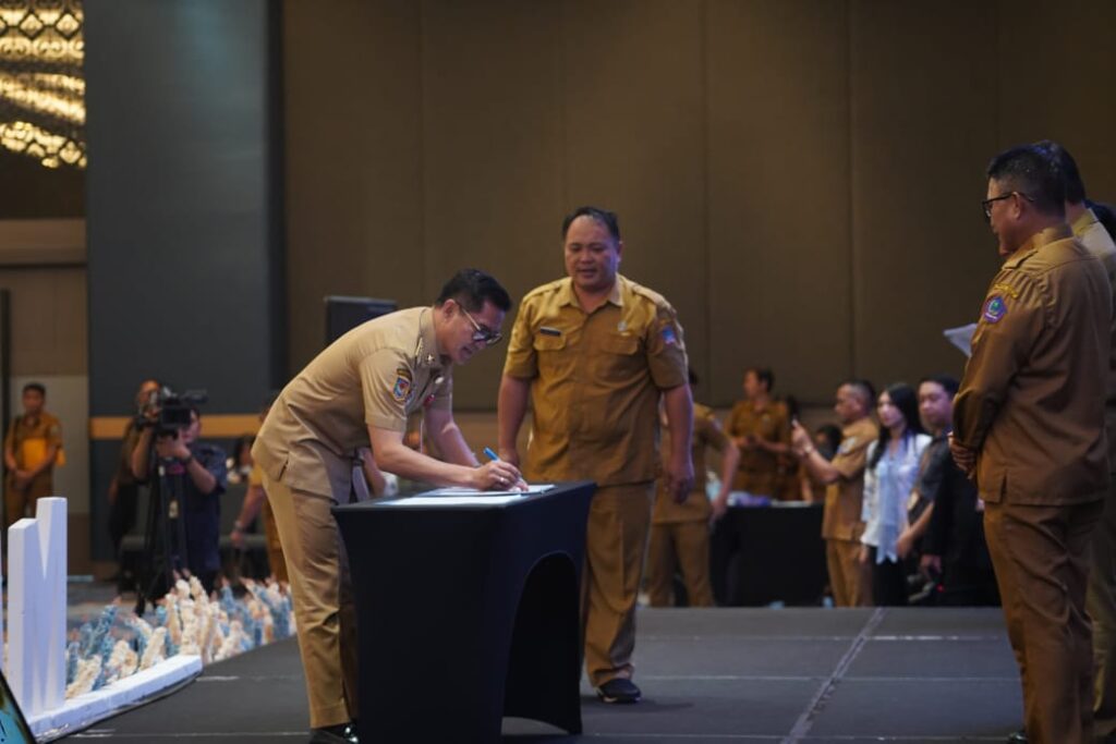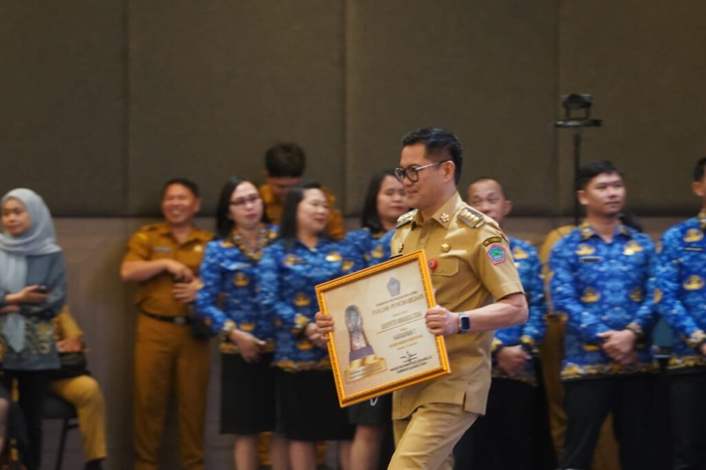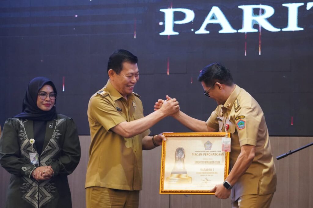 MINUT,Sumberedaksi– Penghargaan tersebut diberikan secara simbolis kepada Bupati Minut, Joune Ganda oleh Wakil Gubernur Sulut, Victor Mailangkay pada Musrenbang RPJMD Provinsi Sulut Tahun 2025-2029 di Hotel Sentral Minut, Senin (30/6/2025).