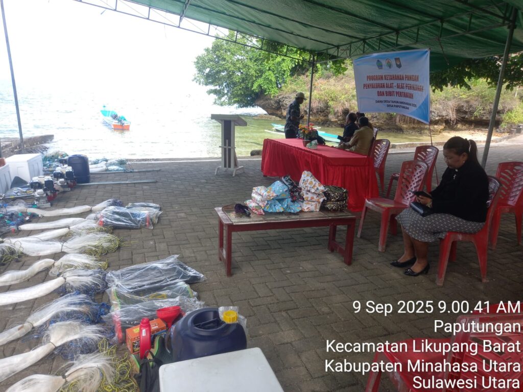 MINUT,Sumberedaksi– Demi memperkuat ketahanan pangan di pesisir, Pemerintah Desa (Pemdes) Paputungan, Kecamatan Likupang Barat (Likbar), Kabupaten Minahasa Utara (Minut), berinisiatif memberikan Bantuan Jaring Ikan kepada kelompok-kelompok nelayan, Selasa (09/09/2025).